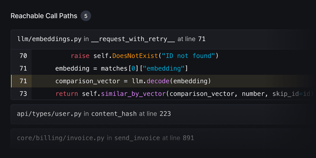 We build a comprehensive AST-based call graph of your entire repository along with all its third-party dependencies.