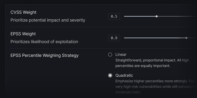 We've invented a new scoring system that enables you to assign custom weights and strategies to CVSS scores, EPSS scores, and percentiles, using reachability information to assign a Dynamic Risk to each vulnerability—so your security can finally be personalized.